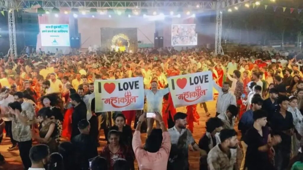 - गरबा स्थल पर आई लव महाकाल के बैनर के साथ लगे जयकारे